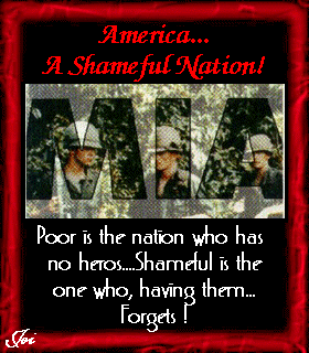 I received this wonderful Web Page Excellence Award from Mr. George Tanner, Sr. of Vet1POWMIA with the following email: This Award is a token of our appreciation to Nikki Mendicino for all of her wonderful accomplishments and support she is to the Veterans. This Award is a tribute to your site for recognizing the POW/MIA and standing by the Veterans like you do. You remain my inspiration for youth. To all the Veterans today you will always be the youngest, sweetest Advocate and voice for our rights. We could not have a stronger representation than an inspiring you lady such as yourself! Thank you so much Mr. Tanner!! It's email like this that make me so proud of everything I have done for our Veterans and our POW/MIA's! Click the award to visit Vet1POWMIA! |