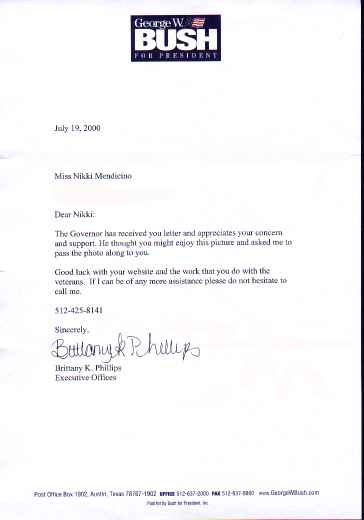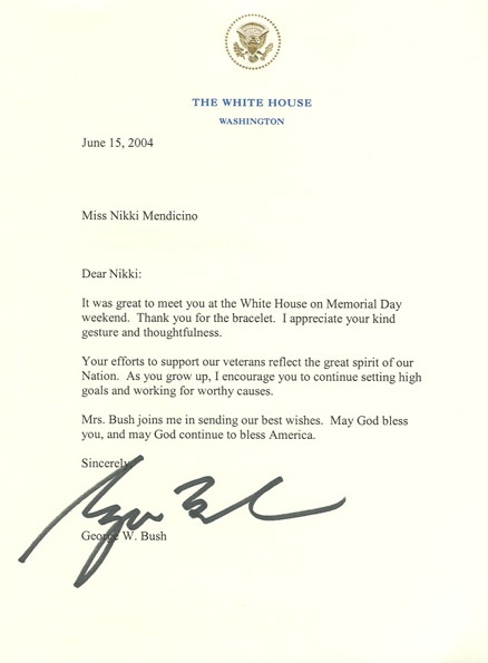And this was a letter I received from Mr. Bush (now President Bush) in 2004 after my visit with him Memorial Day weekend of 2004! |
