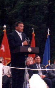 | There were a few other speakers after me and then the Governor gave his Keynote Address. The very first thing he said surprised me and I would like to share it with you, word for word!! "Nikki, I'm sure glad they had a couple of my friends in the legislature speak between your very powerful and appropriate remarks and myself because following you would have been a real task. That is probably one of the finest salutes to Veterans that I have ever heard from anybody, of any age, at anytime." I was very proud!!! During the Governor's address, he told everyone that he was glad to be able to share the spotlight on this day and then he said, "No, I don't even share the spotlight today, because Nikki you've got it all." At the end of his address he said, "And I would ask my friend Nikki and everyone up here to come with me and let's plant a sign." We didn't actually break the gound, instead we planted a sign that says "Now Under Construction" |