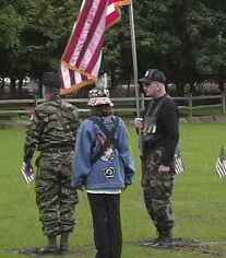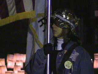 | All of the pictures below are of me, when it was my turn to hold the American Flag. This is one of the proudest things that I get to do!!! It is an honor to hold the Flag and to be at a Vigil to remember our POW/MIA's. I will be there until they all come home!!! |