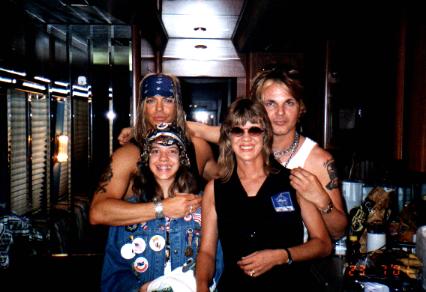 | Then one of the guys with the band told my mom to get in a picture too and if you know my mom you know that she would never, ever in her life, miss a chance like this!!! I think she was as happy as I was!!! But I got to admit, she was the original Poison fan and she would play their CD's all of the time. That's how I learned about Something To Believe In. Now I know every word to every Poison song!!! |