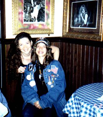 | It was time to head to Hard Rock Cafe (I just had to go there) to meet Sasha and there she is with me (check out the Janis picture above our table!!). Sasha lives in New York City and she is a writer, a photograher, an actress, a model and the founder of www.bikerlady.com (You GO Sasha!!) and we met at Rolling Thunder XIII when she did a story on Rolling Thunder for American Rider magazine!! It was so great to be able to see her again and I was really, really glad that she came to meet us and go to Hard Rock Cafe with us!! We stayed there for a long time and we had a blast!! Sasha even bought me a Hard Rock Cafe shirt to remember my trip!! She is great and we had so much fun with her!!! Thanks Sasha!! |