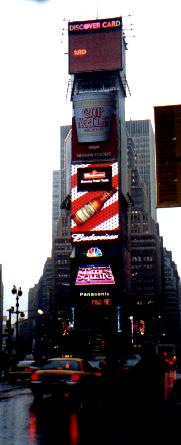 | Then we headed to Times Square!! If you look close at the picture below you will see the MTV studios!! The MTV logo is in the window!! The police had part of the street below blocked off because a ton of fans were watching Carson Daly who was in the window!! |