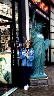 | And since we didn't have time to see the Statue of Liberty either, we did the next best thing here too. We went to the souvenir store beside the Bagel Cafe (check out the Dave picture) and I got my picture taken by their Statue of Liberty!! |