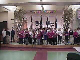 | And there they are, singing at the Veterans Center!!!! Kindergarten, 1st and 2nd grades!!! They sang Happy Birthday, God Bless America and This Land is Your Land!!!! |