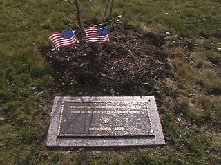 | On November 10, 2000 while I was in Media, PA, my whole school went to South Western Veterans Center, with the help of Mr. Ron Stout!!! This is the first tree and plaque that was dedicated to the Veterans of WWII by the students of Transfiguration School!!! Even though I couldn't be there that day, I was so happy that my school got to meet all of my friends at the Veterans Center. Thank you so much Mr. Stout and also to everyone who bought T-shirts from the school!!!! |