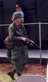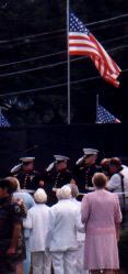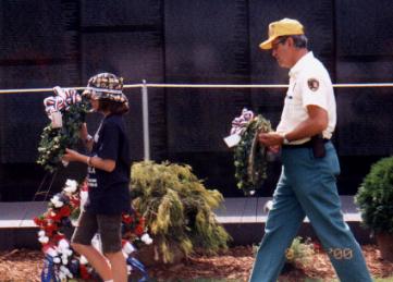 | Top left: And the Marines salute while the kids say the Pledge of Allegiance. Top right: Look!!! That's my favorite Park Ranger, Mr. Devlin. He was there everyday too!! There was a wreath for every person on The Wall from Fayette County and Mr. Devlin and I got to place one too!!! |