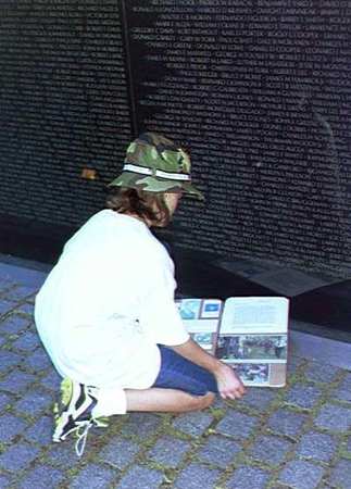 | Here is what the letter said that I left at the Wall... My name is Nikki, I am 11 years old and I live in Pennsylvania, by your hometown. I came to Washington because I wanted to see the Wall and to visit you. You don't know me, but you are my Special adopted POW/MIA. In July I got the chance to meet your mother. She is a wonderful person and we write to each other. She asked me if I would honor you at the Moving Wall and when your name was read I placed a white carnation at Panel 2W. She misses you and is very proud of you. I have a web page dedicated to you and I wear a bracelet with your name on it every day. I brought you a copy of my web page, a picture of your mother and one of me that was in our local paper. I thought you might like to have these. I wanted to leave you something to show that I care. My heart goes out to your family and I pray for you every day. Someday, I hope they bring you home! I will not forget you, I have carved you in the palm of my hand....................Isaiah 49:15 Nikki Mendicino |